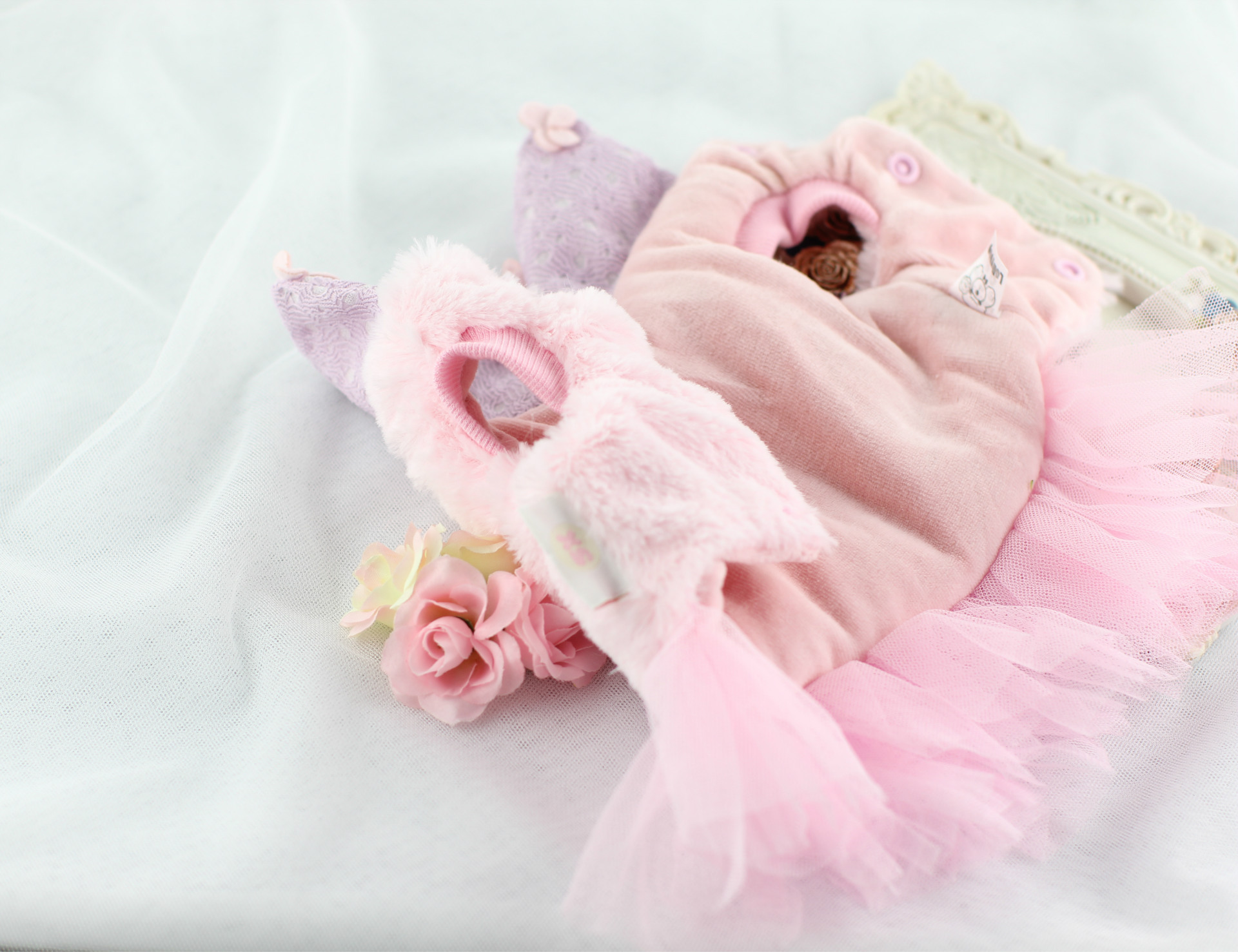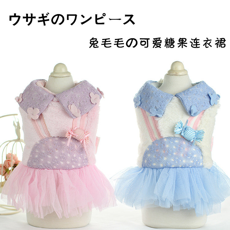 兔毛毛の可愛糖果連衣裙 寵物秋冬裝 狗狗棉衣泰迪厚裙子比熊冬裝