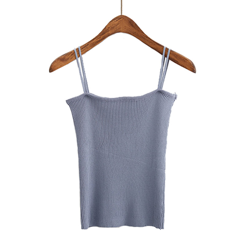 / 秋裝女裝韓版修身顯瘦雙吊帶彈力針織衫小背心外穿短款打底衫上衣