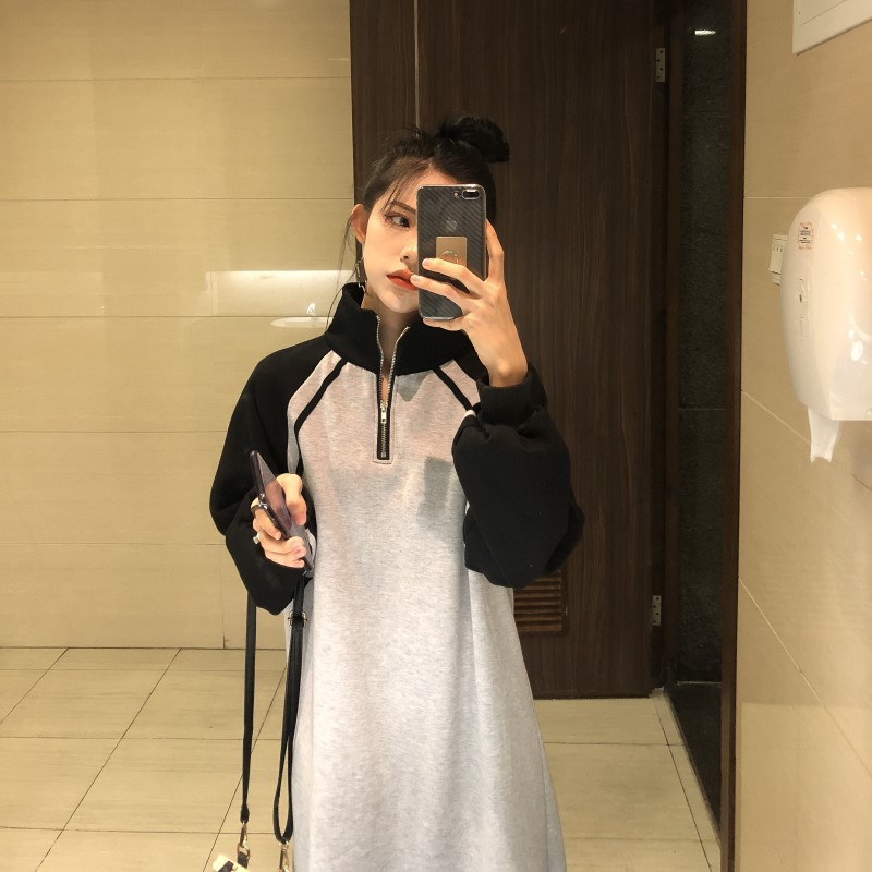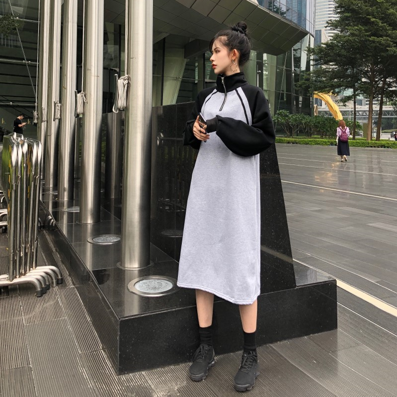 / 韓版時尚女秋裝2018新款裙子百搭寬松顯瘦中長款過膝衛衣裙連衣裙