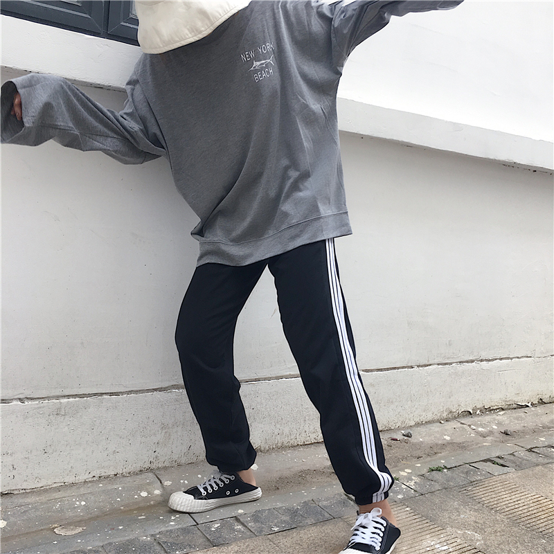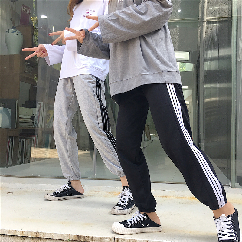 / 春裝新款女裝日系三道杠男女情侶運動褲學生休閑衛褲束腳哈倫褲潮