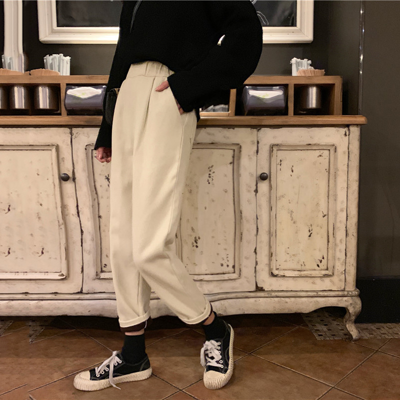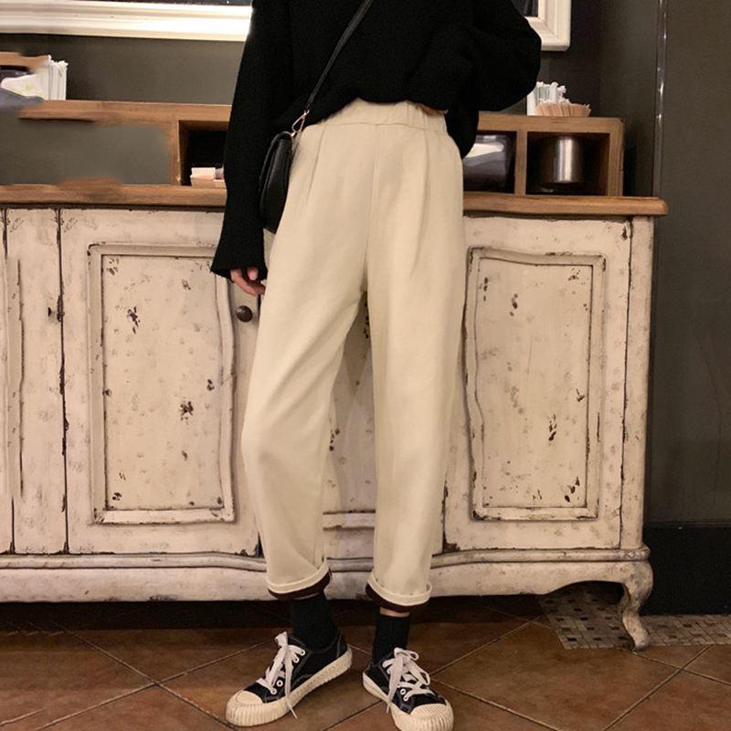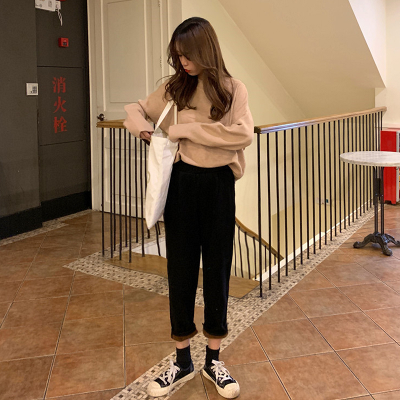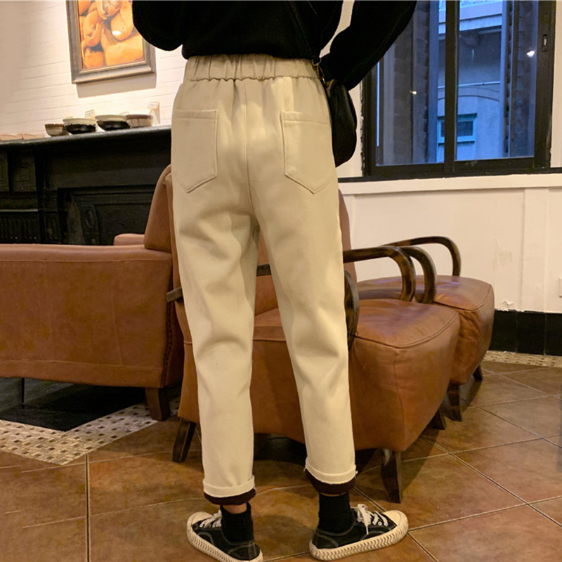 / 黑色加絨牛仔褲冬裝2018新款韓版女裝怪味少女褲高腰哈倫九分褲子