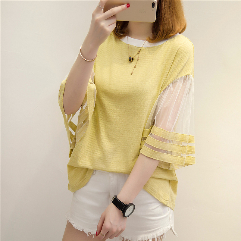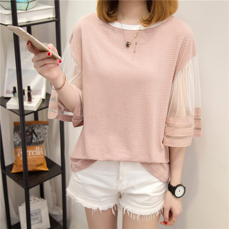 夏裝新款女bf風白色t恤女韓版網紗小清新上衣女夏短袖體恤衫