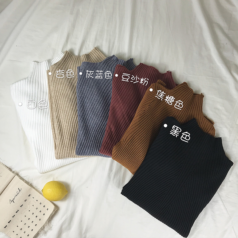 / 毛衣女2018新款秋裝半高領修身彈力打底衫長袖針織衫簡約純色上衣