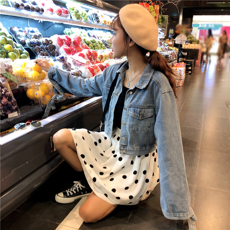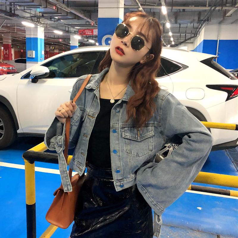 / 秋裝女新款韓版學生帥氣寬松短外套時尚街拍牛仔衫長袖綁帶上衣潮