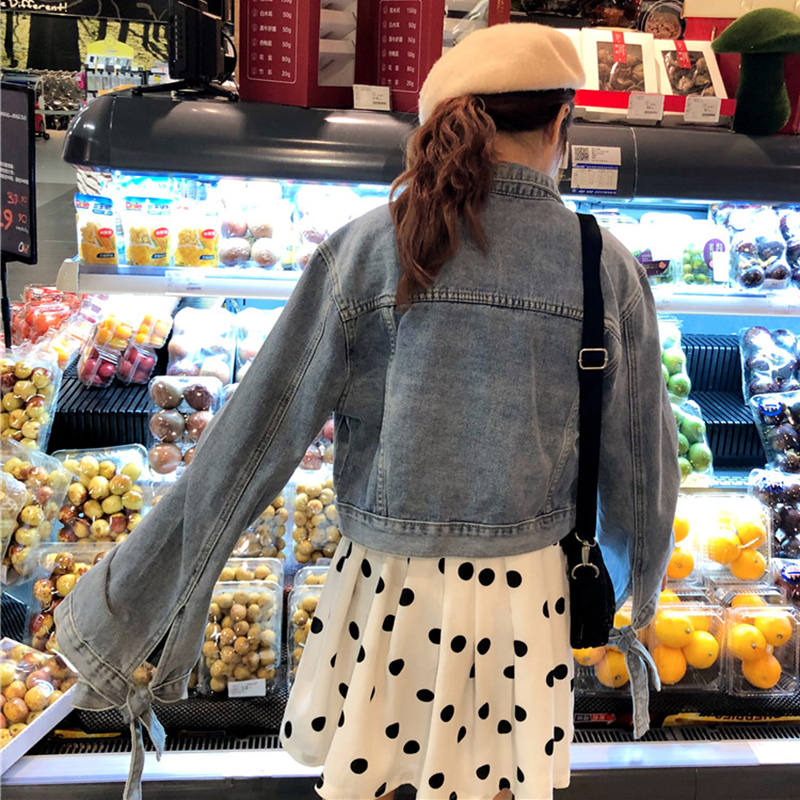 秋裝女新款韓版學生帥氣寬松短外套時尚街拍牛仔衫長袖綁帶上衣潮