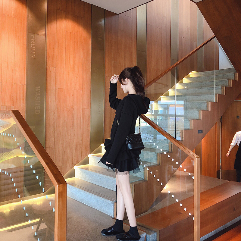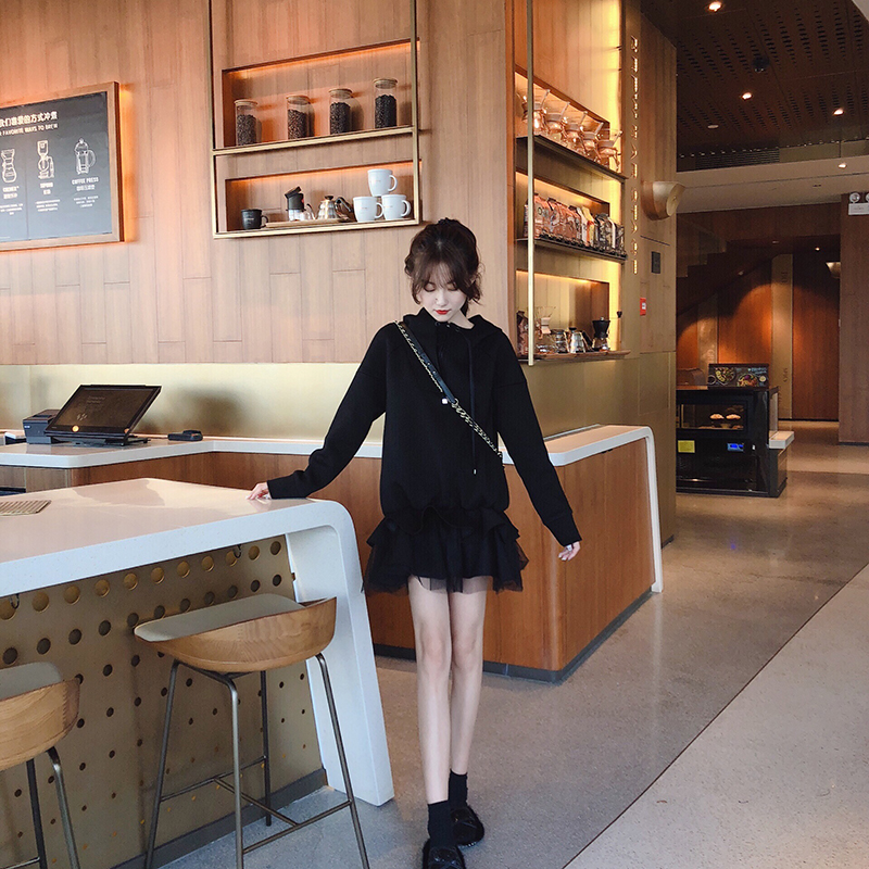 秋冬衛衣連衣裙女2018新款拼接假兩件紗裙少女裙長袖荷葉邊魚尾裙