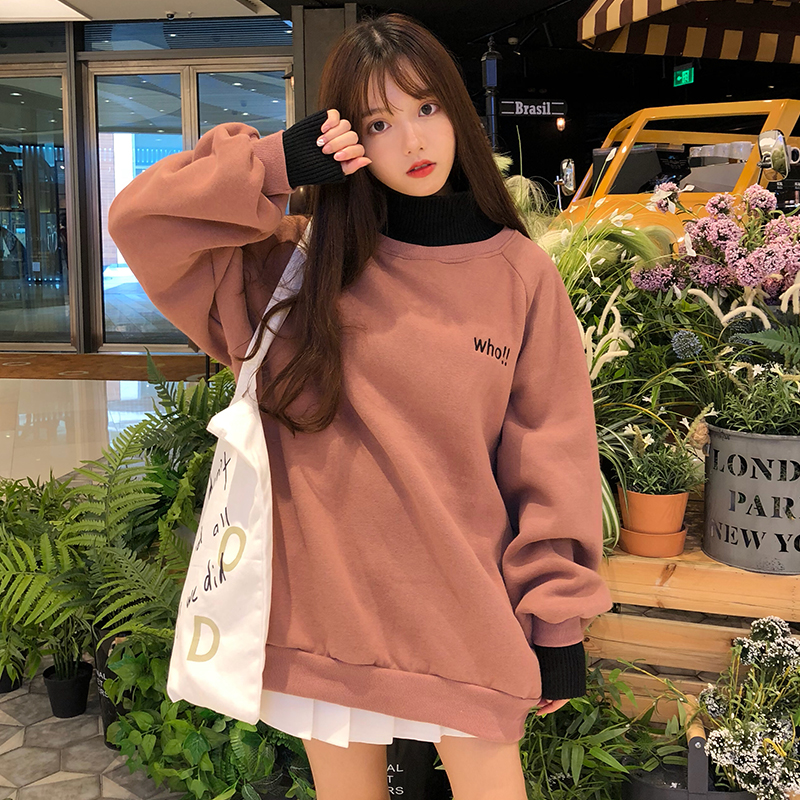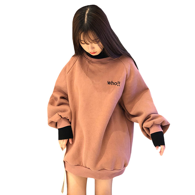 / 秋冬韓版中長款慵懶風寬松字母刺繡假兩件加絨加厚超火衛衣外套女
